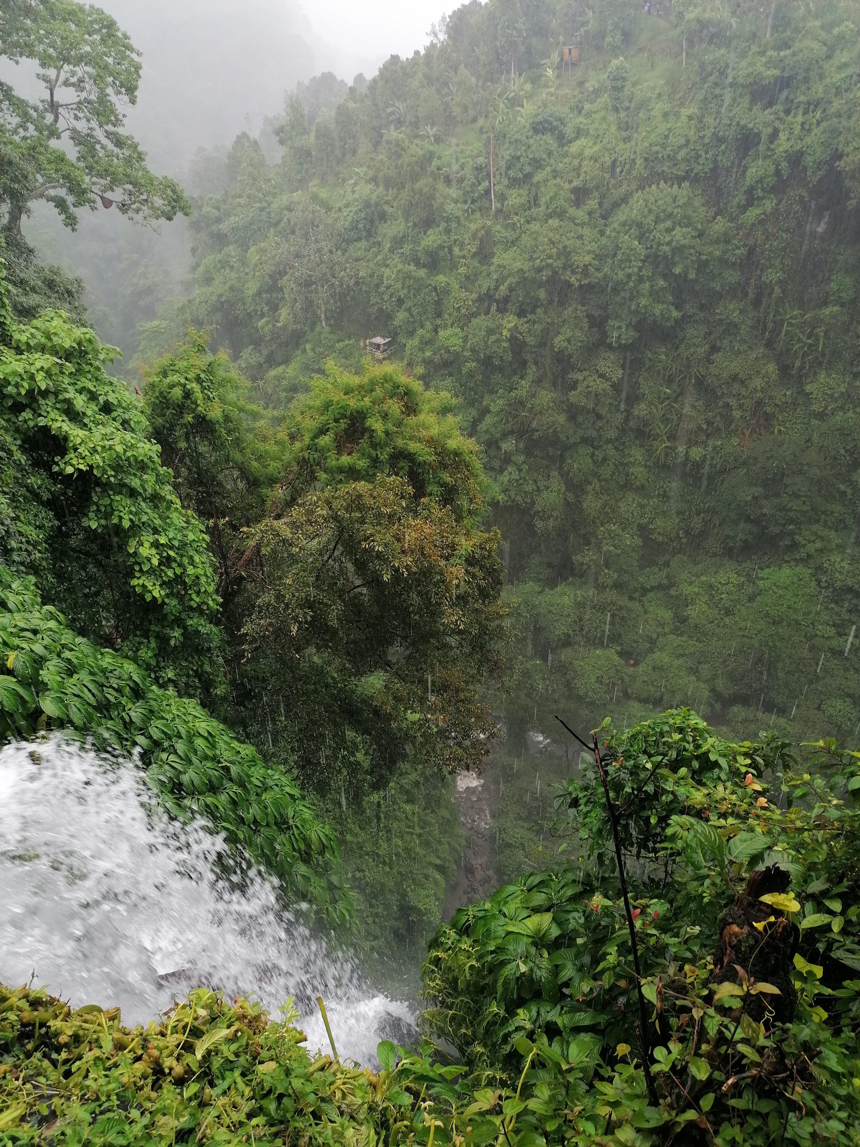 Nous nous sommes ensuite rendues à la cascade de Sekumpul avec un guide et nous avons commencé à marcher sous une pluie torrentielle accompagnée de tonnerre. Une fois arrivées en haut de la cascade trempées comme des rats (enfin moi j’avais ma belle cape de pluie), nous avons dit au guide que nous ne voulions pas descendre tout en bas en marchant dans la jungle sous l’orage alors nous avons malheureusement fait demi-tour. Nous avons donc repris la route vers Ubud (1h40 pour 40km), où nous avons assisté à un spectacle typique (ou attrape touriste) balinais.