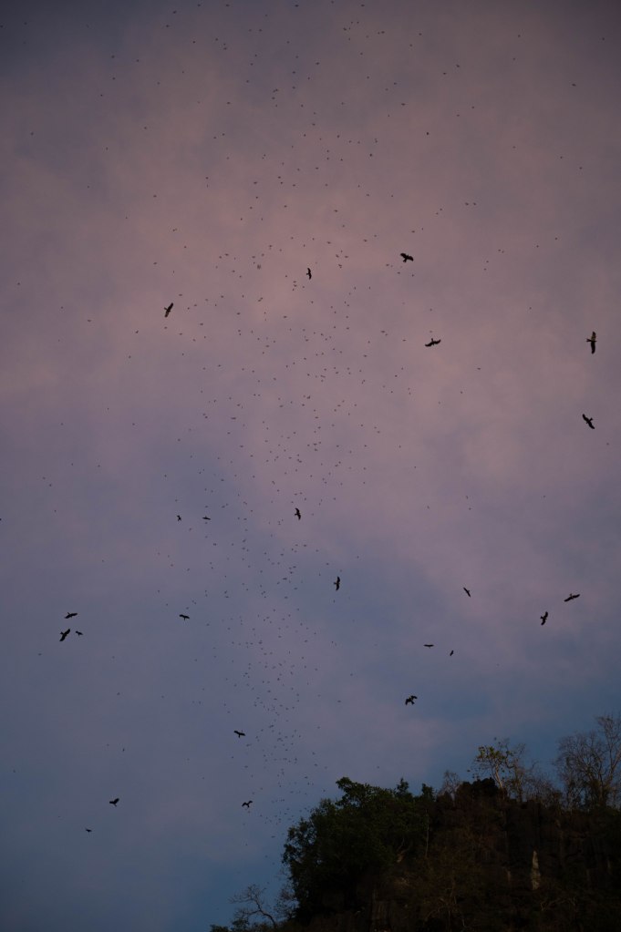 Dernière étape de la journée, nous prenons un petit bateau coloré jusqu’au Rammang Rammang Karst Village. Le trajet en bateau nous coûte 2,90€ / pers et le droit d’accès au village 0,90c / pers. Là bas nous faisons le tour grâce à des pontons. Il y a peu de vie mais le paysage est joli. Sur le retour, le bateau s’arrête pour nous laisser observer les milliers de chauves souris qui sortent de leur grotte à 18h00. Le spectacle est impressionnant et c’est sans compter les dizaines d’aigles présents aussi pour se faire un festin.