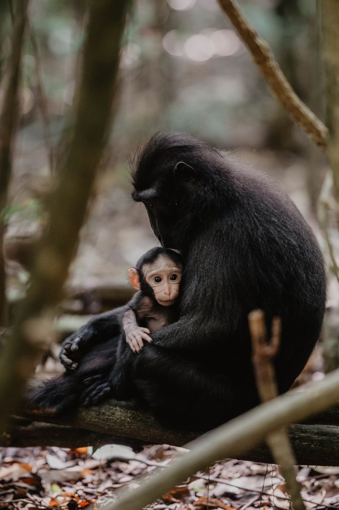 Nous apercevons des coucous (en haut des arbres), des toucans et pendant qu’on les observe, des dizaines de macaca nigra courent et se chamaillent à une vingtaine de mètres de nous ! Plus loin sur le chemin du retour, un nouveau groupe est là, cette fois beaucoup plus calme, on a pu s’approcher vraiment près pour les observer ! En partant aussi tôt le matin, nous n’avons croisé aucun autre groupe de touriste. En faisant le trek du soir, il parait qu’il y a plus de monde.
